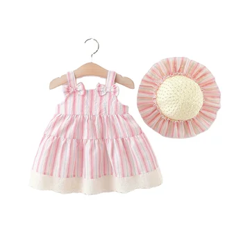 Summer High Quality New Kids Clothes 100% Cotton Pink Blue Sleeveless Little Girls Dress Baby Girl Dresses