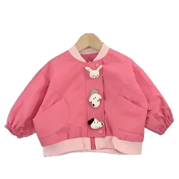 Ropa de primavera y otoño para niños, ropa de moda para niños, venta al por mayor, ropa de bebé rosa, abrigos para niñas