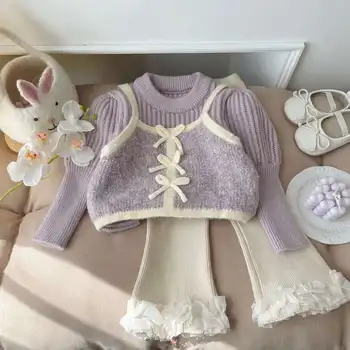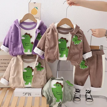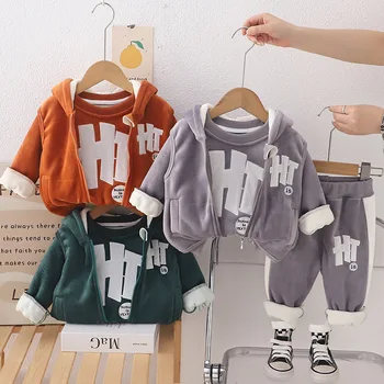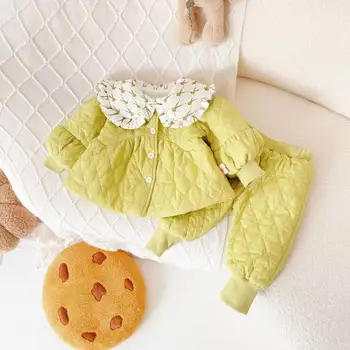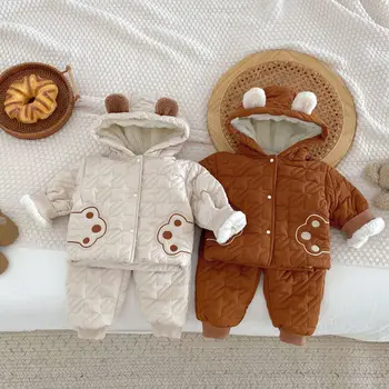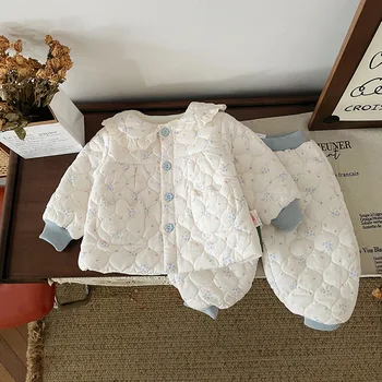 Venta al por mayor de ropa para niñas pequeñas, ropa de invierno gruesa de dos piezas para recién nacidos a 3 años, ropa de abrigo de invierno para niños y niñas