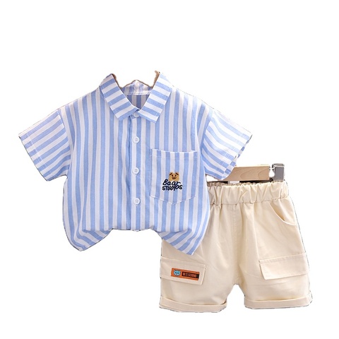 Groothandel Zomer Jongens 2-delige Casual Print Katoen/Polyester Shirt Met Korte Mouwen & Pak Baby Kleding Sets