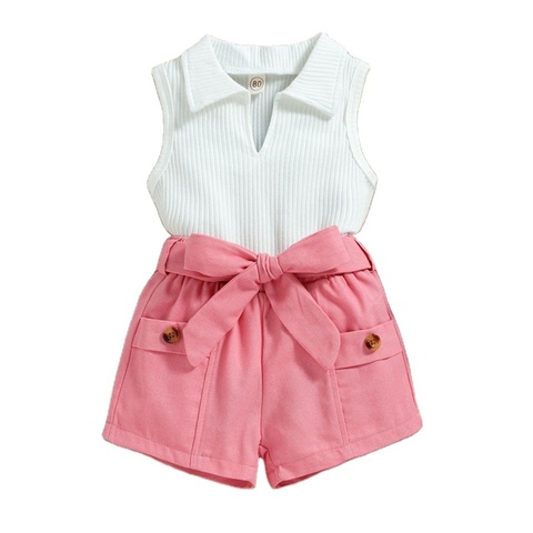 Modieuze 2-delige Mouwloze Zomeroutfits Meisjes 1-jarige Peuters Boetiekkwaliteit Katoenen Kinderkledingset