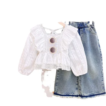 מכירת חיסול בגדי ילדים חדשים אופנתיים מבד כותנה, סט 2 חלקים לבנות