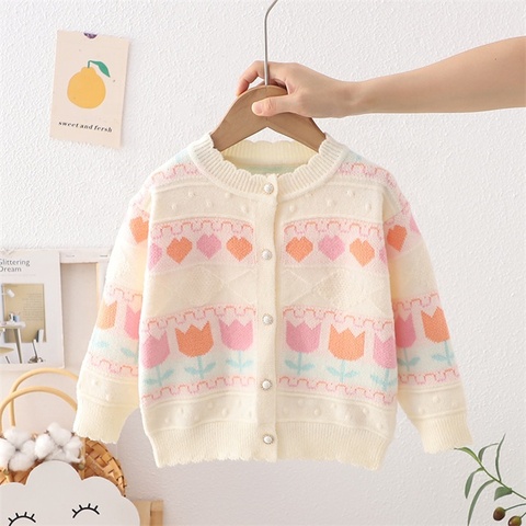 Bahar sonbahar çocuk kız giyim hırka kazak uzun kollu baskı örme kazak