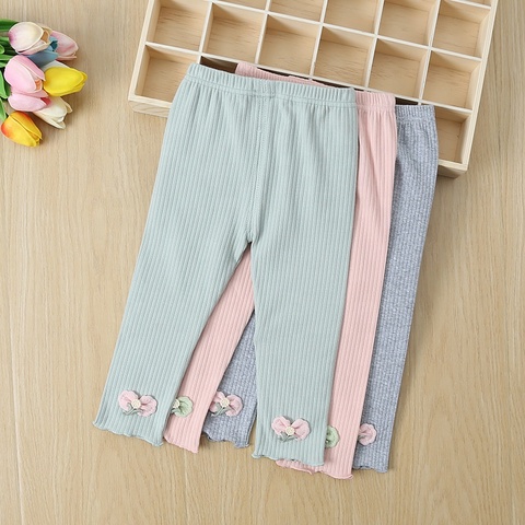 Yeni çocuk orta uzunlukta sevimli ince kırpılmış pantolon tayt kız pamuk bebek pantolon