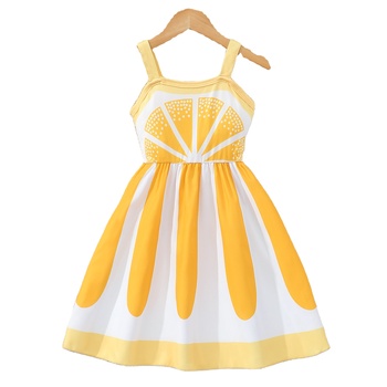 Vestido para niñas con patrón naranja Vestido de estilo de empalme dulce de verano para niñas de 7 a 8 años