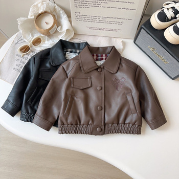 2026 yılında yeni modeller kız giyim kış giysileri ceketler bebek kıyafetleri OEM özel deri ceket bebek ile ön cep
