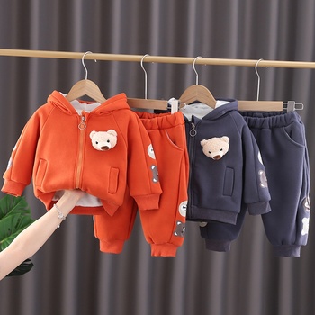 Toptancılar çocuk giyim çocuk giyim iki adet Set sevimli takım elbise kış Hoodies erkek giyim setleri