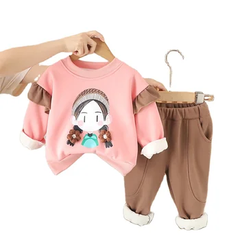 Sonbahar kış erkek giyim setleri karikatür desen rahat erkek iki parçalı giyim kalın bebek giyim